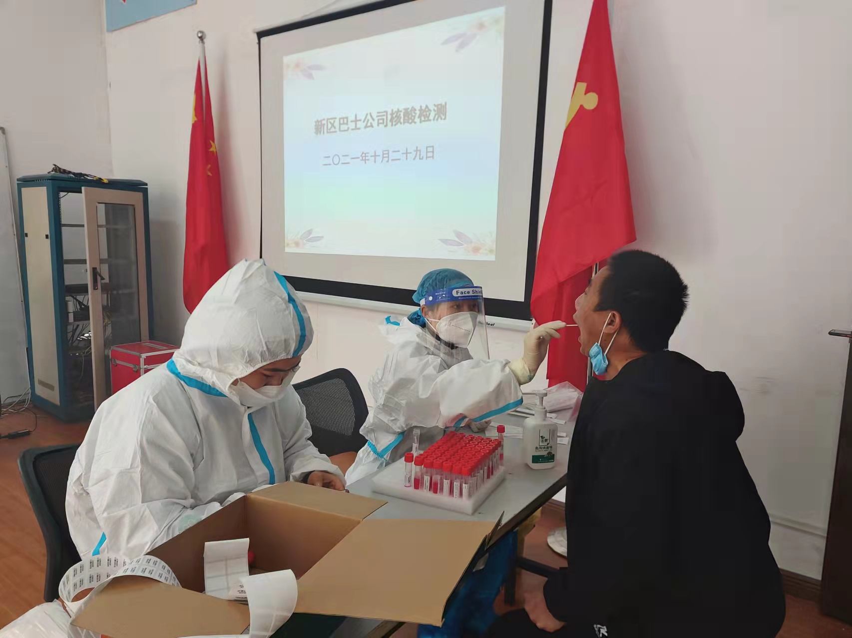 由于公交行業(yè)具有點(diǎn)多面廣、員工眾多、線(xiàn)路分散、工作性質(zhì)特殊等特點(diǎn),集團(tuán)對(duì)核酸檢測(cè)工作進(jìn)行了精心安排部署,指定專(zhuān)人負(fù)責(zé),提前記錄個(gè)人信息,登記造冊(cè),掃描核酸檢測(cè)條碼進(jìn)行采樣。為了保證核酸檢測(cè)和公交運(yùn)營(yíng)兩不誤,還邀請(qǐng)了防疫人員走進(jìn)各分公司場(chǎng)站集中進(jìn)行采樣。