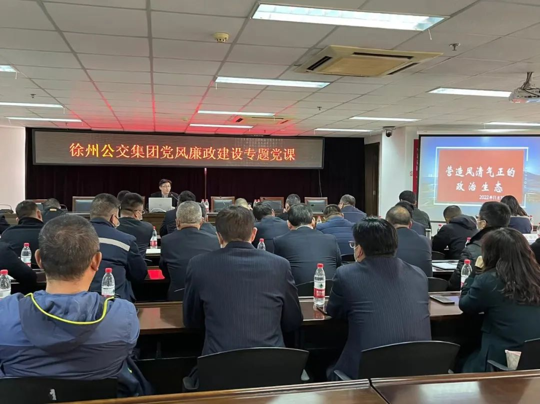 為深入學(xué)習(xí)貫徹落實(shí)黨的二十大精神,堅(jiān)定不移推進(jìn)全面從嚴(yán)治黨向縱深發(fā)展,營造集團(tuán)風(fēng)清氣正的政治生態(tài),11月17日,徐州公交集團(tuán)開展黨風(fēng)廉政建設(shè)專題黨課。公交集團(tuán)黨委副書記、總經(jīng)理袁夫松主持會(huì)議,集團(tuán)機(jī)關(guān)部室、基層單位負(fù)責(zé)人等50余人參加學(xué)習(xí)。